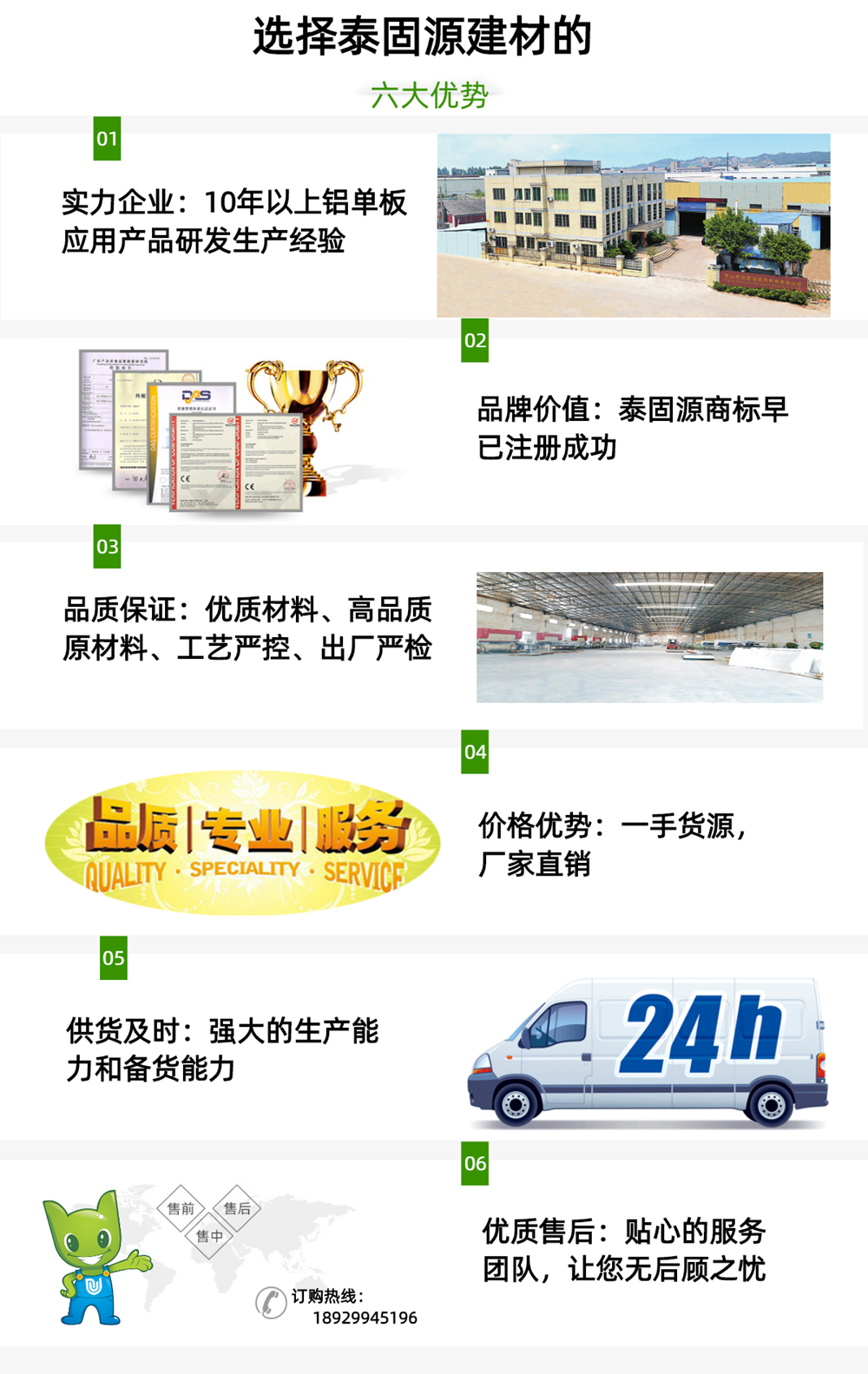 關(guān)于我們佛山市泰固源裝飾材料有限公司是一家研發(fā)、生產(chǎn)鋁單板和陶土板、航空板三大系列的大型企業(yè)。公司成立于二零一零年,鋁單板占地面積10000平米,陶土板占地面積300畝。擁有環(huán)境優(yōu)雅、寬敞、明亮的現(xiàn)代化標(biāo)準(zhǔn)廠(chǎng)房及辦公大樓。位于佛山市南海區(qū)里水勝利工業(yè)園,地理位置優(yōu)越。我司技術(shù)實(shí)力強(qiáng)大,生產(chǎn)管理科學(xué)嚴(yán)謹(jǐn)。它在引進(jìn)意大利生產(chǎn)設(shè)備的基礎(chǔ)上,立足于持續(xù)革新制造工藝,使各項(xiàng)技術(shù)指標(biāo)遠(yuǎn)遠(yuǎn)超出國(guó)家及行業(yè)標(biāo)準(zhǔn),跨入先進(jìn)水平行列,在經(jīng)濟(jì)和社會(huì)效益方面取得了巨大的成就。我司自主研發(fā)、生產(chǎn)泰固源鋁單板,泰固源陶土板這兩大系列產(chǎn)品,多年來(lái),經(jīng)過(guò)公司全體員工的通力協(xié)作,我們的品牌產(chǎn)品(泰固源,辛源牌)得到業(yè)內(nèi)人士一致認(rèn)可。銷(xiāo)售網(wǎng)點(diǎn)遍布國(guó)內(nèi),并與諸多國(guó)內(nèi)外客戶(hù)建立了長(zhǎng)期友好的合作關(guān)系,產(chǎn)品銷(xiāo)往國(guó)內(nèi)并走向世界